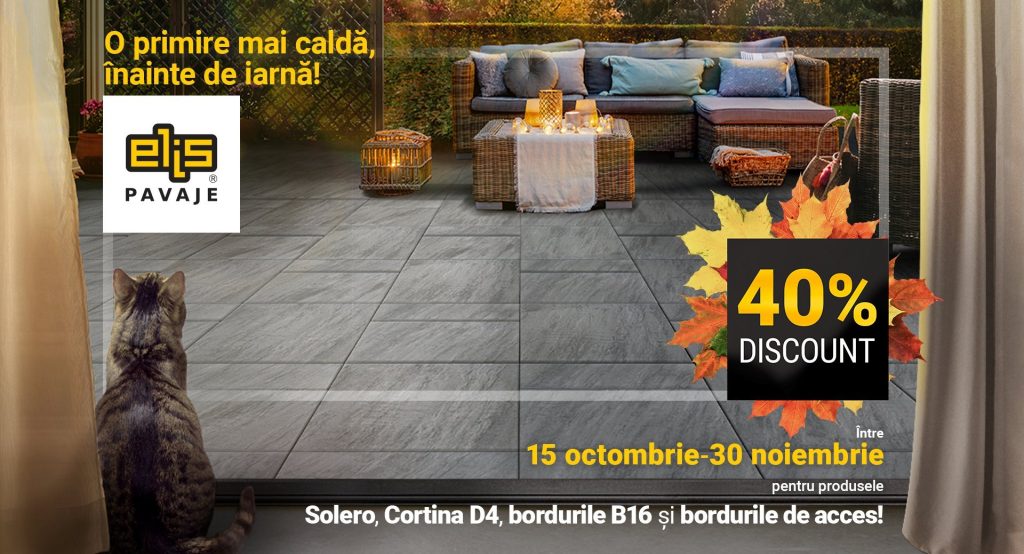Între 15 octombrie și 30 noiembrie, beneficiezi de o ofertă specială de 40% reducere la produsele pentru amenajări exterioare de la Elis Pavaje.